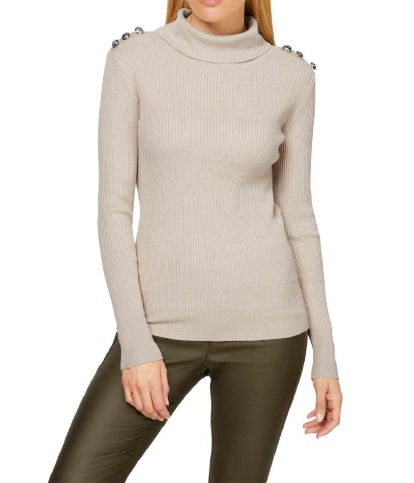 Πρώτης κλάσης Basic για ποικίλους συνδυασμούς! Κλασικό στιλ. Σε ίσια γραμμή, που τονίζει τη σιλουέτα. Με ασημί διακοσμητικά κουμπιά στους ώμους και ριπ φάσες στο τελείωμα στα μανίκια και το στρίφωμα. Άνετη, απαλή ριπ φίνα πλέξη από 80% βισκόζ, 20% πολυαμίντ. Μήκος περ. 62 cm.