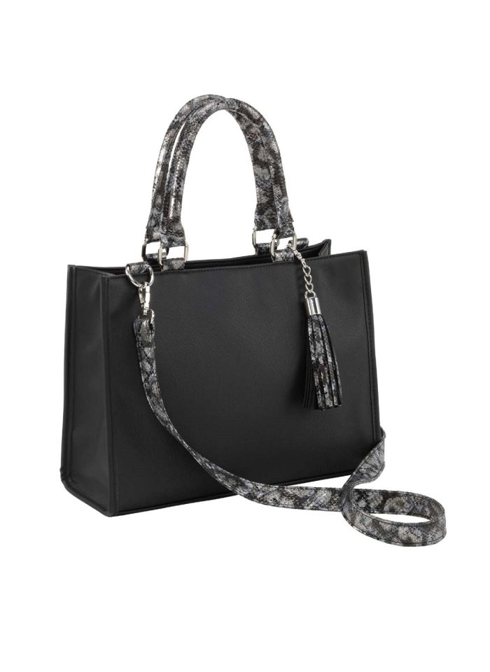 Αγάπη με την πρώτη ματιά! Θαυμάσια, λειτουργική τσάντα με γυαλιστερό Animal-Print στο χερούλι και το αφαιρούμενο λουράκι. Διακοσμητική φούντα. Από υψηλής αξίας συνθετικό σε δερμάτινη οπτική. Φερμουάρ. Επένδυση με θήκη και θήκη για κινητό και θήκη με φερμουάρ. Περ. 33x25x11 cm.