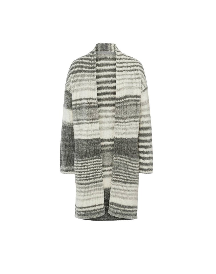 Ζεστή ζακέτα από Bouclé-ριπ πλέξη με μοντέρνο ριγέ ντεσέν. Άνετη ανοιχτή γραμμή με ελααφρώς σηκωτό γιακά, παρτούς ώμους και τσέπες. Απαλή μαλακή πλέξη από 57% πολυακρύλ, 25% μαλλί, 18% πολυέστερ. Ίσια γραμμή. Μήκος περ. 92 cm.