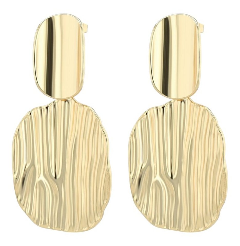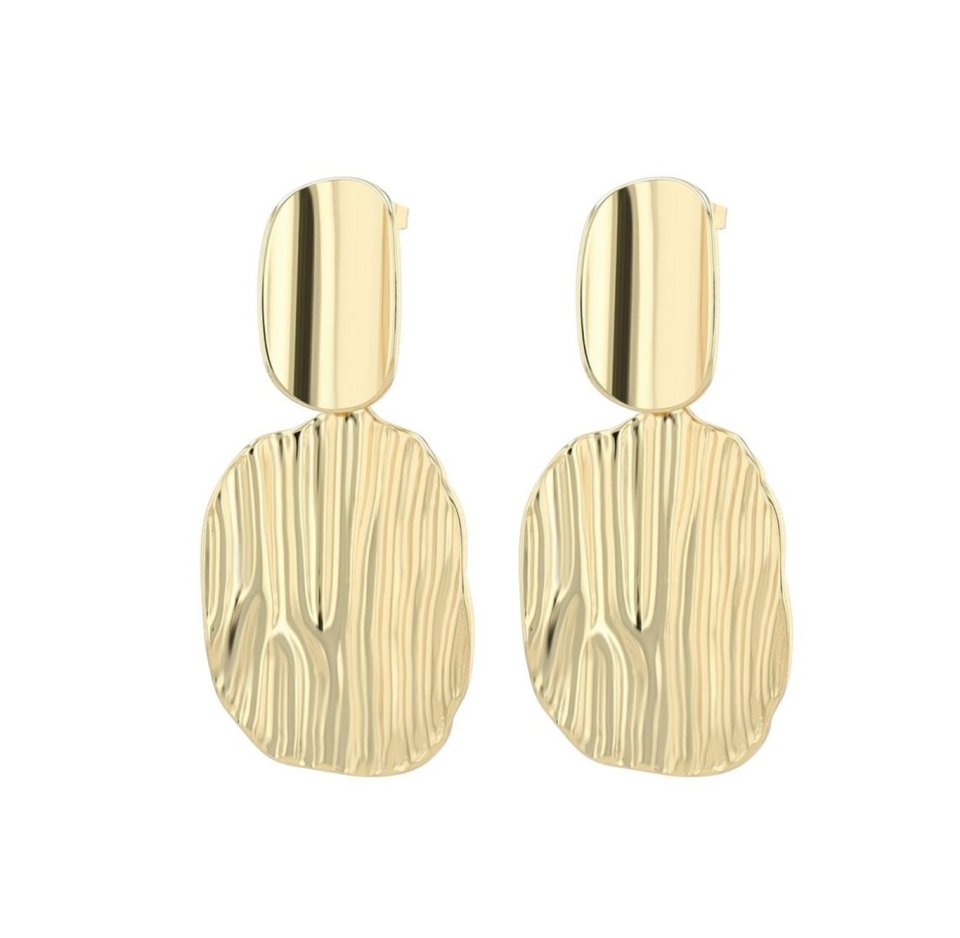 Υψηλής αξίας σκουλαρίκια από ανθεκτικό ατσάλι με πρακτικό κούμπωμα, αναδεικνύει μοντέρνο Design με φίνα επεξεργασία. Συνολικό μήκος 53 mm και ελαφρώς konkaven σχήμα, σταθερό μέρος 21 mm με γυαλάδα και κρεμαστό μήκος 33 mm με ανάγλυφη επιφάνεια.