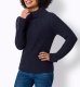 Ζεστό πουλόβερ. Μαλακή χοντρή πλέξη σε μίξη σχεδίων από 100% πολυακρύλ. Με γυριστό γιακά, μακριά μανίκια με γύρισμα και ριπ φάσες στο τελείωμα. Μήκος περ. 62 cm.