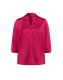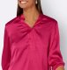Μοντέρνα πουκαμίσα με σηκωτό γιακά φαρδιές φάσες και διπλή επεξεργασία στην V-λαιμόκοψη, που σταθεροποιείται με κούμπωμα θηλιά. Σπορτίβ ριπ πλεκτές φάσες στο τελείωμα στα 3/4-μανίκια. Άνετο κόψιμο με πάσα πίσω. Απαλή χυτή σατέν ποιότητα από 100% πολυέστερ. Μήκος περ. 64 cm.